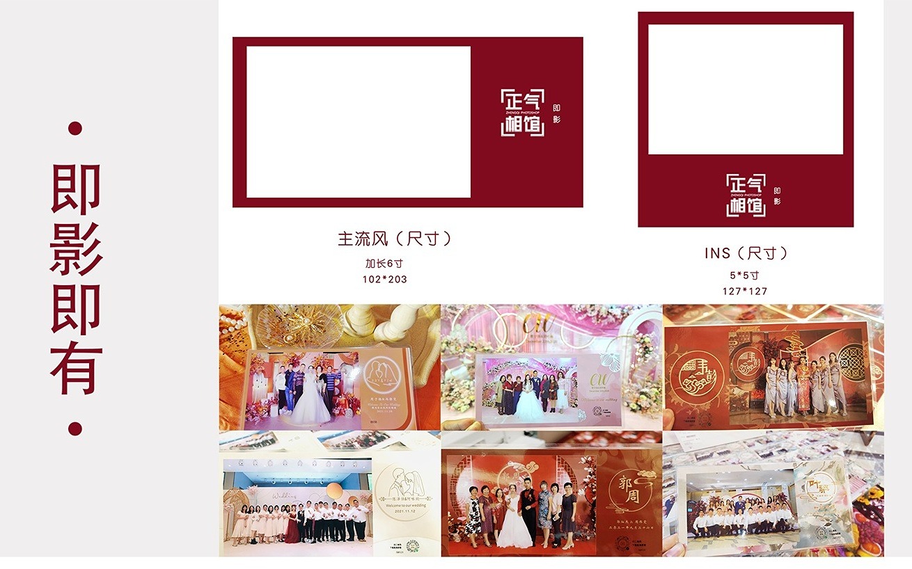 • 摄影师1位+过塑师1名, • 爱普生干式打印机,原装墨盒,进口富士相纸; • 无限张数,双机过塑; • 现场微信扫码马上下载超清拍摄原图,图片直播,发朋友圈,修图等,畅所欲言。 • 用时4小时(17.30-21.30)时间可更改。*超时按500元/小时计算。